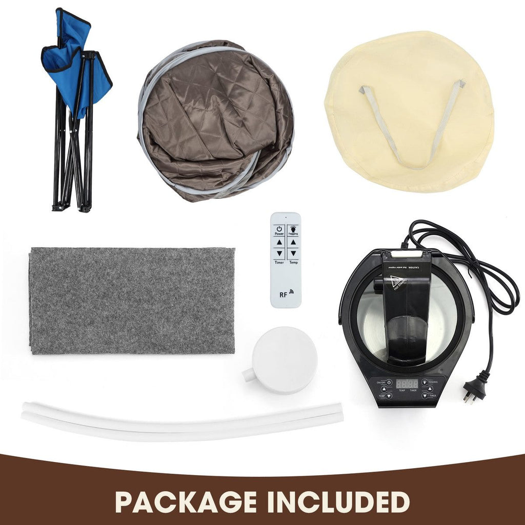 Portable & User-Friendly: Set up your sauna in under 1 minute for instant relaxation. The sealed tent includes sweat-absorbent footpads, a machine-washable chair, and a remote control. Accommodating users up to 90KG and 70.9in