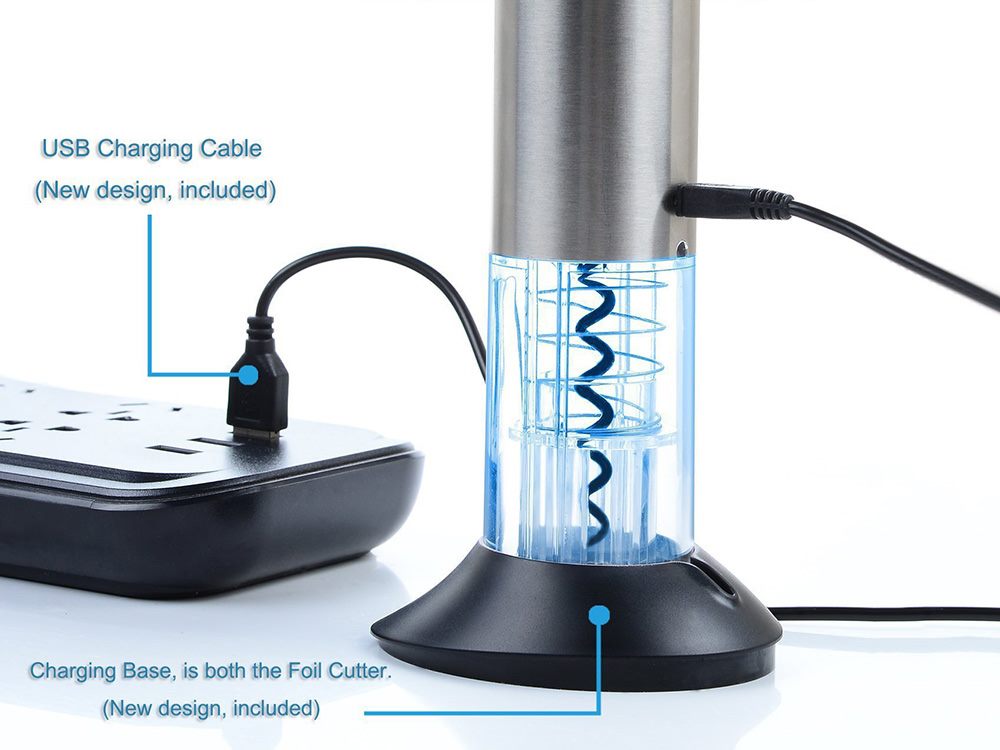 - Built-in rechargeable battery, open a bottle just need simple push-button operation, removes the cork in seconds