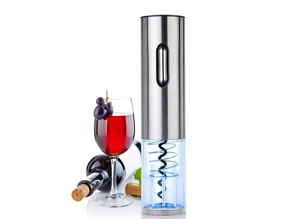 This wine opener features stainless steel housing with a transparent shell surrounding the corkscrew mechanism, as well as an elegant charging base with LED light. You can simply press the switch to start and wait the wine opener to removes the cork in seconds. The wine opener makes a great gift idea for that wine lover on your list.