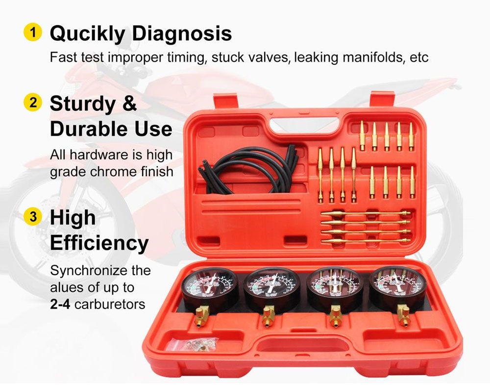 4 Cylinder Carburetor Vacuum Synchronizer Kit - Professional, Durable, Easy to Use