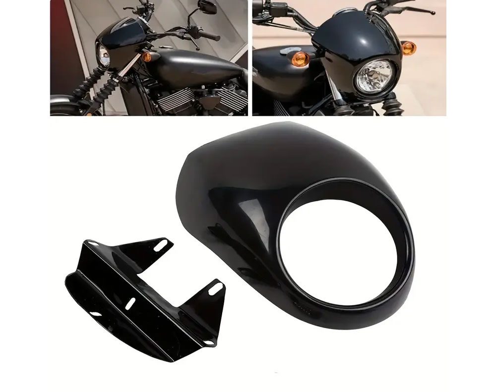 Enhance the style and aerodynamics of your Harley Sportster or Dyna with our aftermarket matte black headlight fairing cover. This durable ABS plastic headlight cover is designed for a perfect fit and easy installation. Upgrade your motorcycle's appearance and enjoy improved wind protection with this high quality fairing