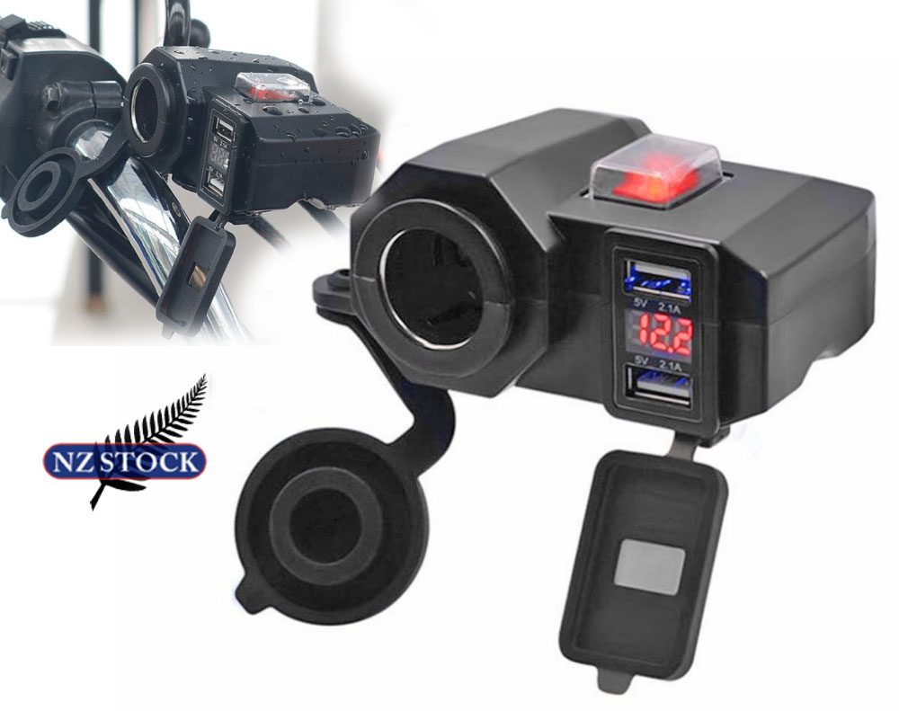 12V Motorcycle Cigarette Lighter USB Charger Voltmeter Integration Socket Charge phones & monitor voltage on your motorcycle. Waterproof, universal design. Easy installation