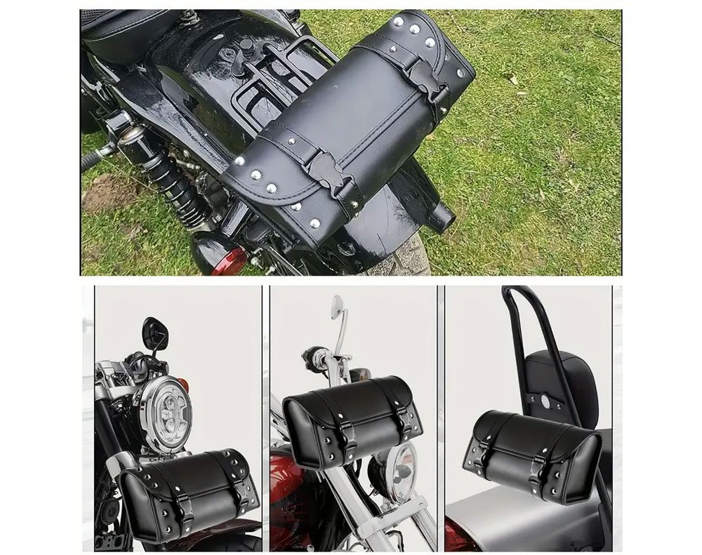 Leather Motorcycle Saddlebag - Side Tool Tail Bag for Bikers