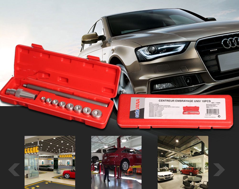 This set includes 10 tools designed to aid in the alignment of clutch plates for mounting. They ensure precise alignment of clutch plates and pilot bearings. Suitable for use on most cars and light commercial vehicles.