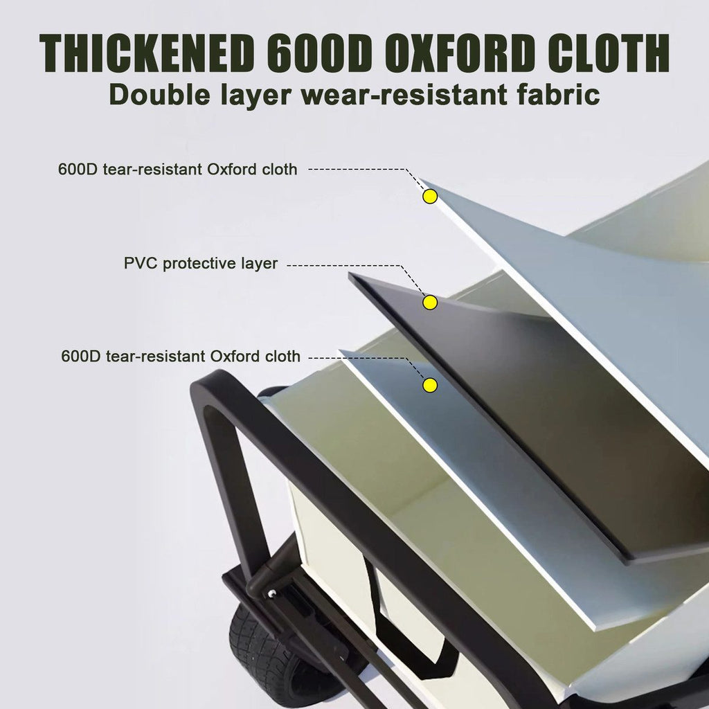 High Capacity: Made of a heavy-duty metal frame with welded construction, the folding cart is absolutely solid and durable. The utility cart is made of 600D fabric and PVC coating, waterproof and durable. Size: 90x51x60cm. Folding Dimension: 53x76x19cm.