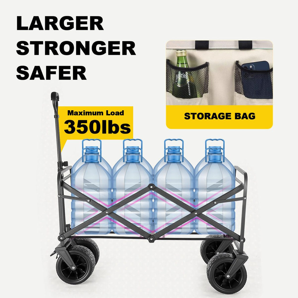 Adjustable Handle: The tilting pulling handle of the folding beach wagon is telescopic with an adjustable length of 76cm to 99cm for a comfortable grip. The handle with a locking system keeps it in place.