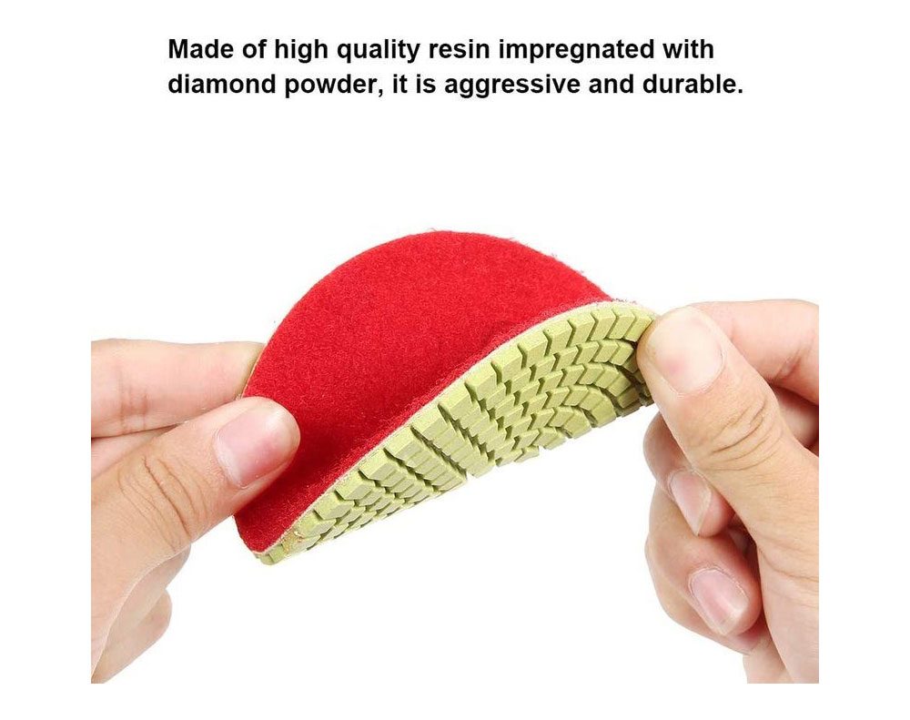 - Made of high quality diamond powder impregnated resin for aggressiveness and durability, polishing pads with different grits, meet your different needs. High efficiency, fast work, achieve good gloss bright.