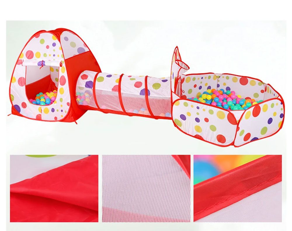 Unleash your child's imagination with our 3-in-1 play tent and tunnel. This versatile playset transforms any space into a fun-filled adventure. The spacious tent, connecting tunnel, and ball pit (not included) offer endless entertainment possibilities. The pop-up design ensures quick and easy setup, while the foldable storage makes it convenient to store when not in use. Crafted from high-quality materials, this playset provides a safe and enjoyable environment for your child to explore and play.