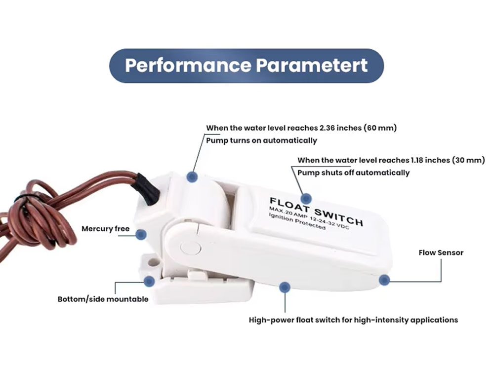 Automatic Bilge Pump Float Switch - Durable, Reliable, 12V/24V