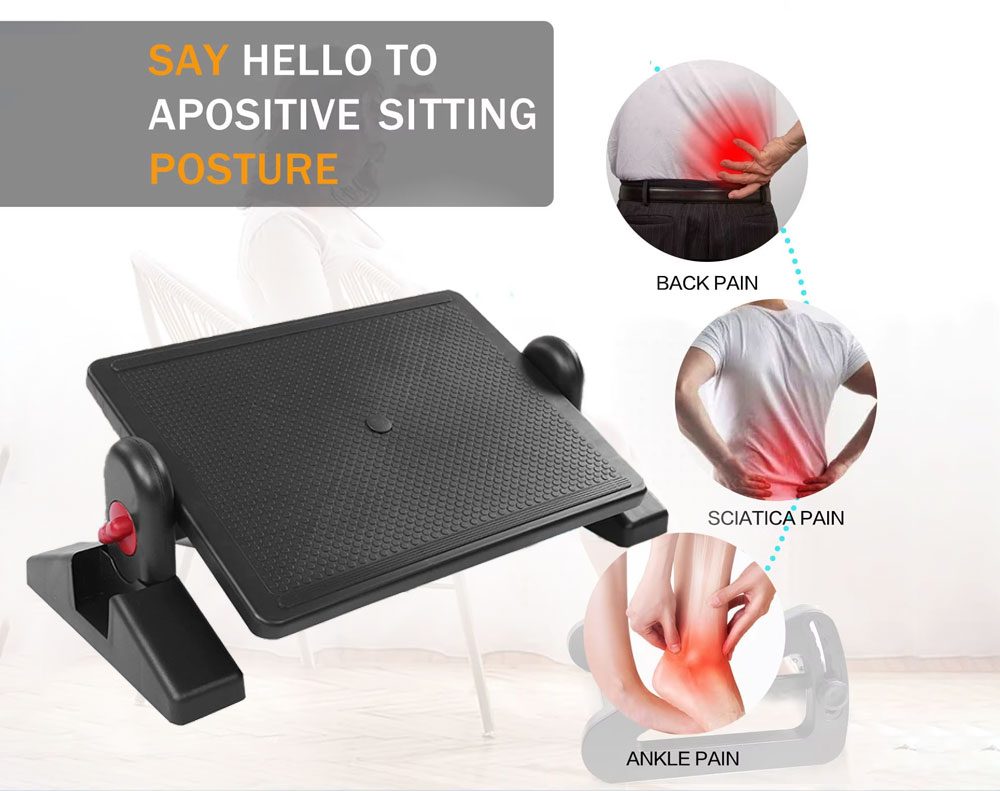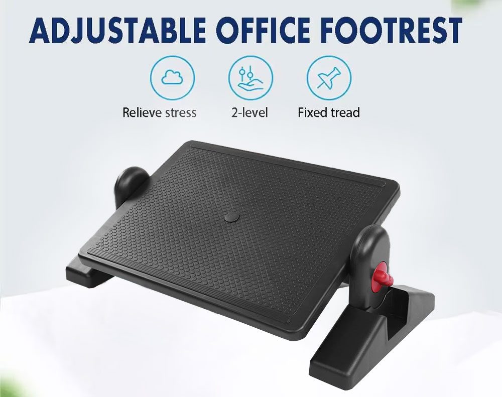 Enhance your comfort and productivity with our ergonomic adjustable foot rest. This footrest promotes healthy blood circulation and reduces leg fatigue. The contoured surface gently massages your feet, while the adjustable height and tilt angle provide customized support.