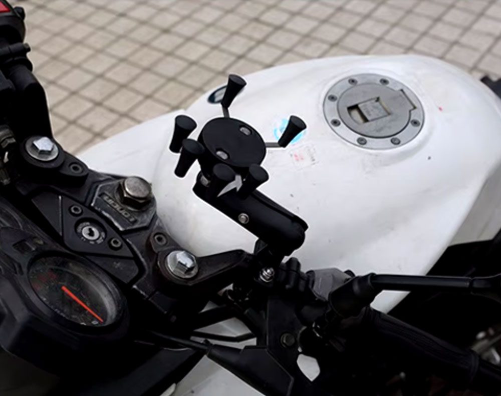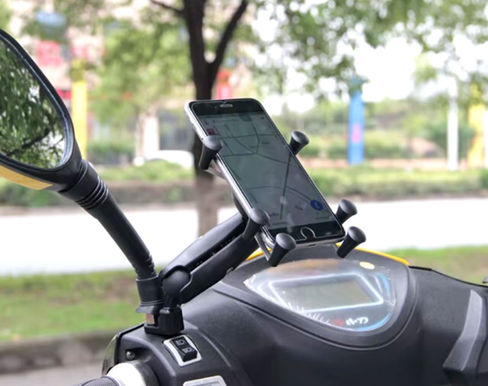 This universal phone holder securely mounts your phone or GPS to your motorcycle, bike, or bicycle handlebar.