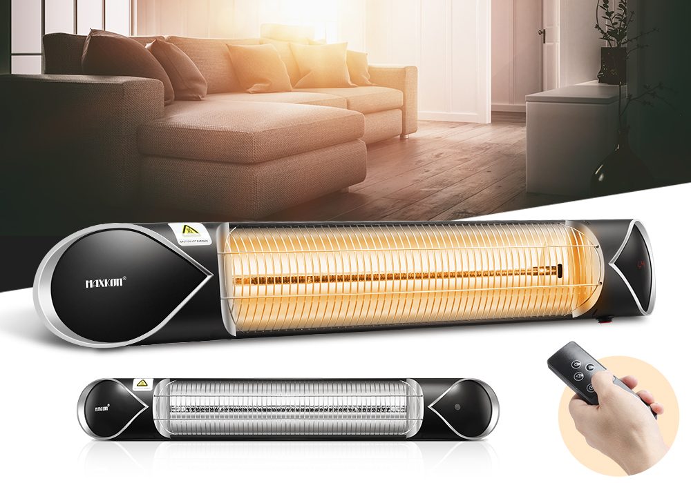 Warm up quickly, 5 to 10 seconds delivers direct heat The high-performance carbon-fibre technology heating tube of MAXKON Infrared Heater produces a large amount of heat quickly at a power of 2500W, and could minimize oxygen consumption and moisture loss in the air. MAXKON Electric Wall-Mounted Patio Heater constructed with an aluminia housing (98% reflection preventing rearward heat loss) and bracket could be easily mounted on a wall both for save space and bring warmth. The bracket can be adjusted to different angles for infrared directional heat. The carbon fiber heating elements are efficient with a longer lifespan about 10,000 hours.
