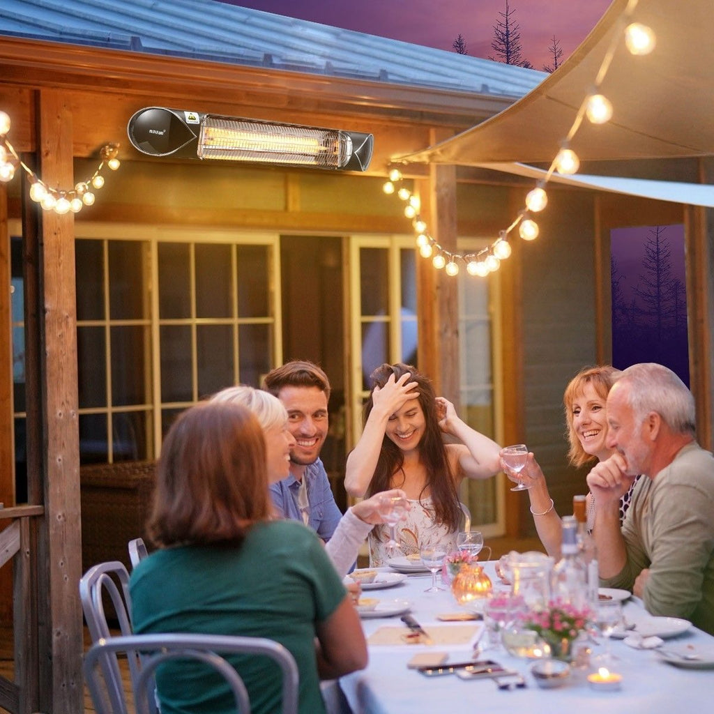 Product Bathe in the sun-like warmth and enjoy the pleasant hours on the cooler evenings with this high efficient infrared heater which produces 2500 watts of radiant heat energy. Featuring carbon fibre bulb technology, this electric heater is able to deliver heat in just seconds and warms objects and people directly. Features