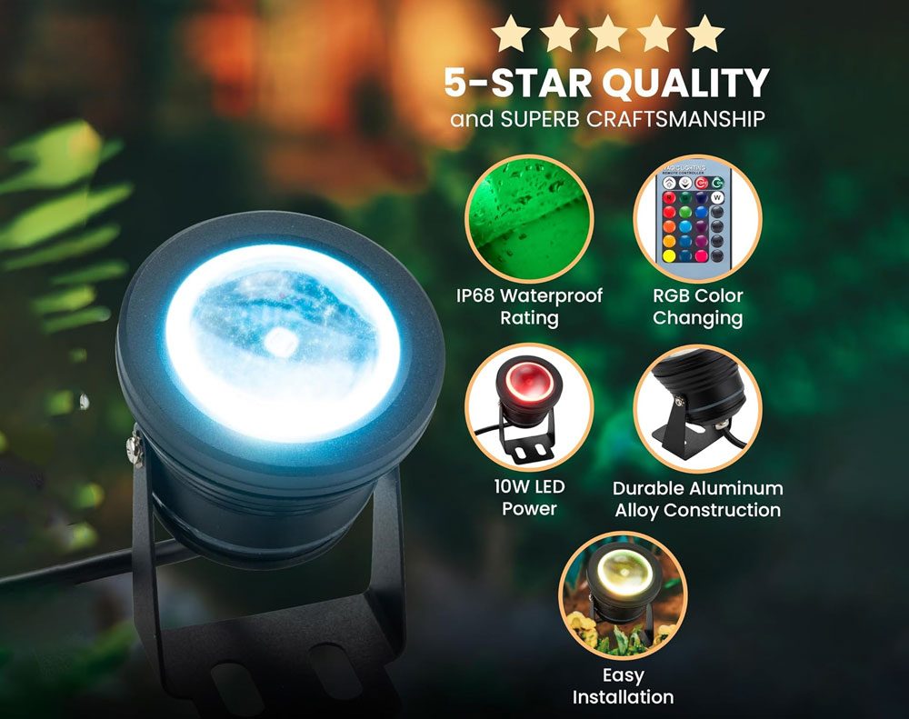 - Fully submersible and perfectly sealed, waterproof spotlight adds a dazzle of color to your pond or fountain