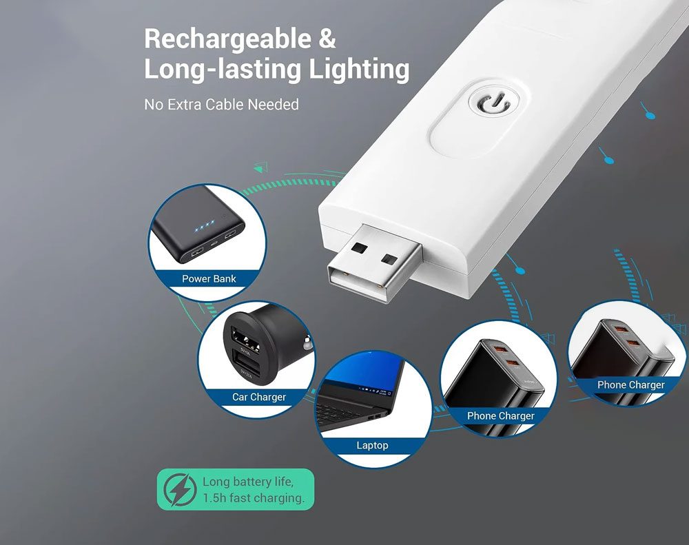 Enhance your reading experience with this versatile USB rechargeable book light. The adjustable brightness and flexible lighting angle allow you to customize the light to your preferences, while the compact and lightweight design makes it perfect for reading in bed or on the go. Enjoy comfortable and clear reading without disturbing others.