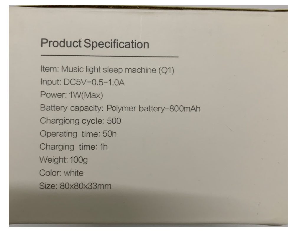 1 * White noise machine 1 * USB power cord